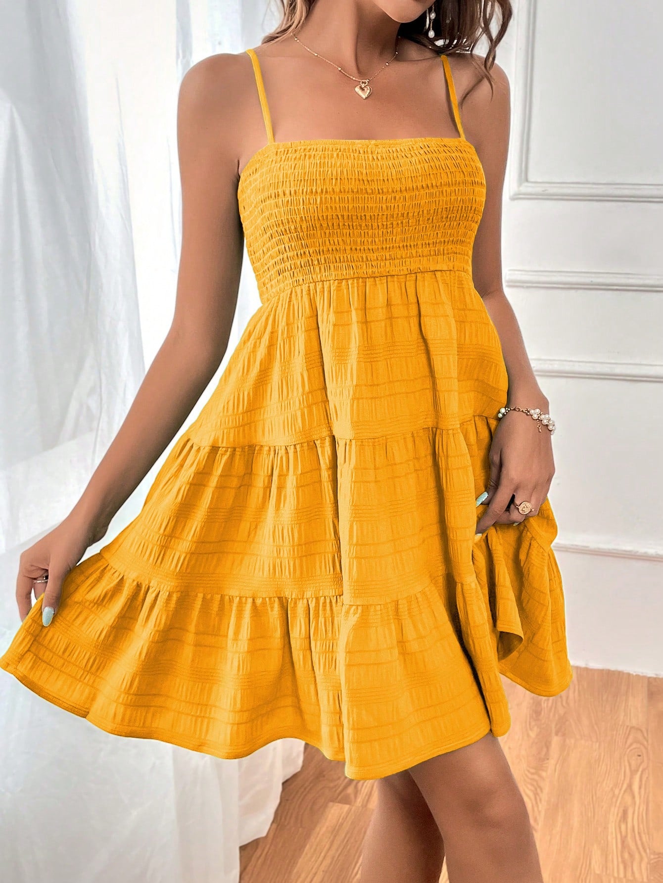 Vestido De Tirantes De Espagueti Con Dobladillo Con Volantes De Color Sólido Para Mujer